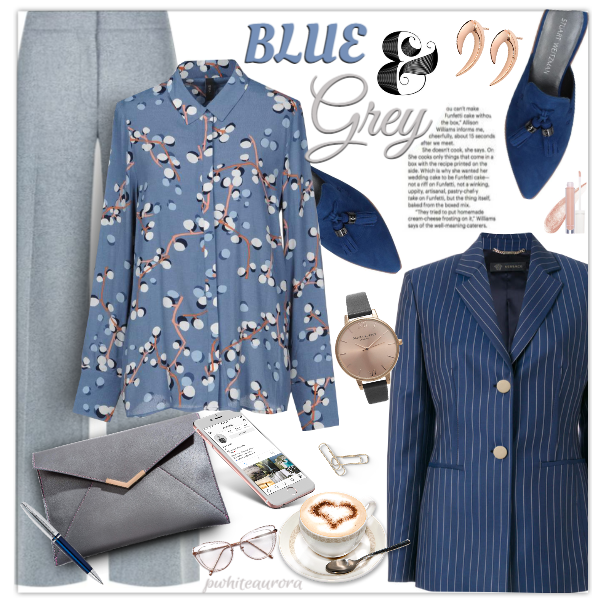 Published Sept 5, 2020 ~ 8:22pm MT #designer #Versace #AlexanderMcQueen #StuartWeitzman #office #blazer #pants #tailoredshirt #envelopeclutch #blueandgray #blueandgrey By – pwhiteaurora