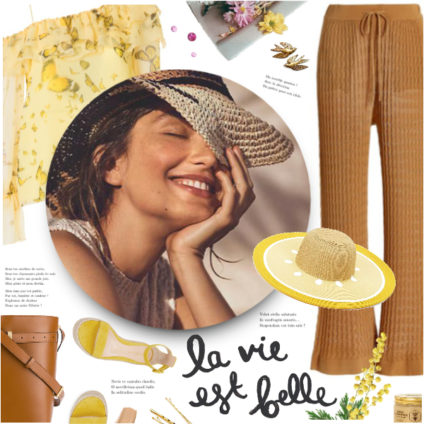#butterflyprintblouse #oneshoulderblouse #blumarine #pointelleknitpants #dodobaror #suedeespadrilles #gianvitorossi #bucketbag #victoriabeckham #fruitybrimsunhat #vintagegoldenbirdearrings #yellow #camel #contest #spring #summer #butterflies #urstyle By – beautifulplace
