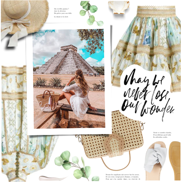 #patchworkprintsilkblouse #zimmermann #patchworkprintskirt #zimmermann #wovenboxbag #wovenbag #mehrymu #sandals #flats #espadrij #strawhat #cancun #contes #fashion #summer #look #mexico #urstyle By – beautifulplace