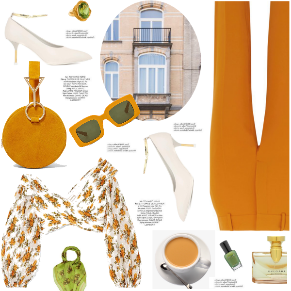 Last Days of Summer- Floral top Zimmermann, Mustard pants, White pumps