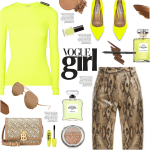 High-waisted snake-print trousers MSGM, Neon Lime top, pumps