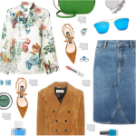 Floral blouse D&G, denim skirt, coat
