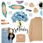 Green manolo pumps, camel sweater, jeans