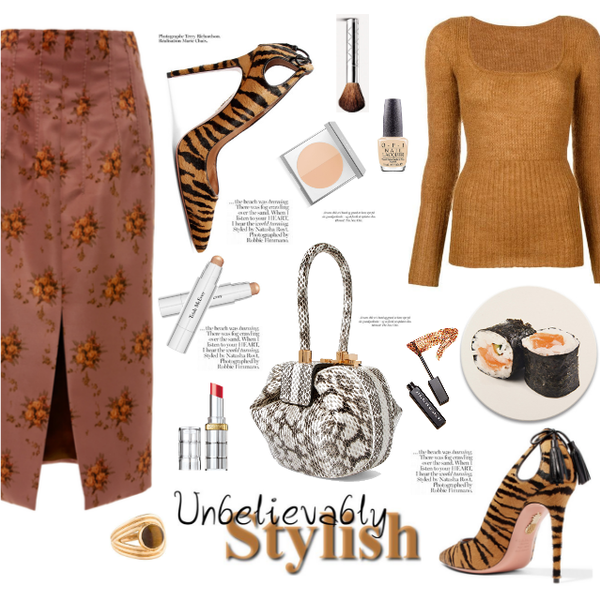 Unbelievably Stylish: Floral skirt, Sweater, Tiger print pumps