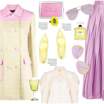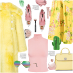Candy colors outfit- yellow faux fur coat, floral skirt, d&g tiger pumps