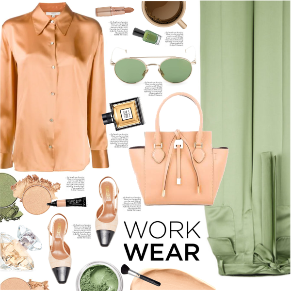 Peach and Middle Green work wear- satin blouse, pants
