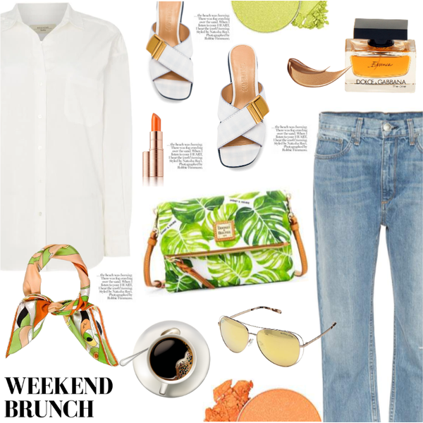 Brunch- white blouse, jeans,Foldover Zip Crossbody Bag