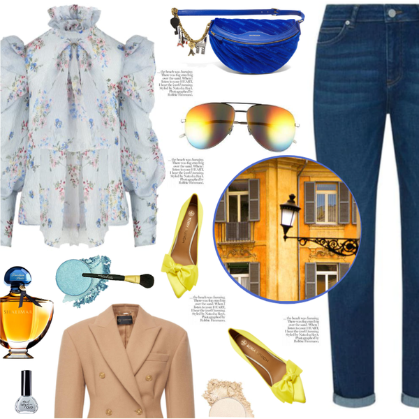 Venice vacation outfit-floral blouse d&g, yellow skirt