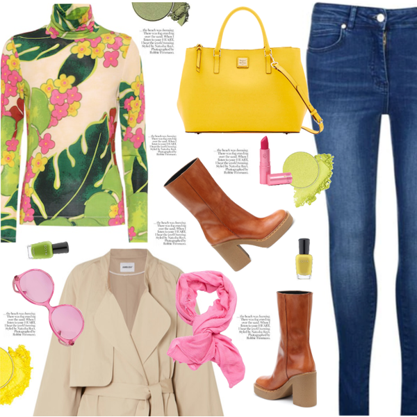 Platform Leather Ankle Boots- Prada, Floral top, jeans, beige coat
