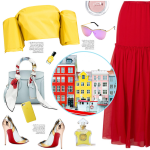 Travel outfit Denmark – Copenhagen-yellow top, red skirt