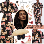 Johanna Ortiz Oversized Dark Floral Midi Dress