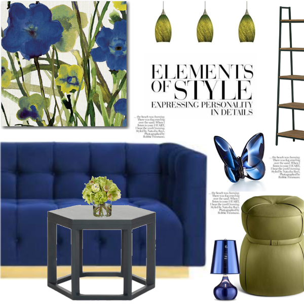 Home set- Green Stool, Blue & Green Floral Wrapped Canvas