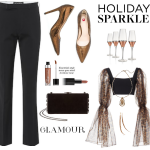 Holiday Sparkle: Leopard tulle bustier, pants, glitter pumps, party style
