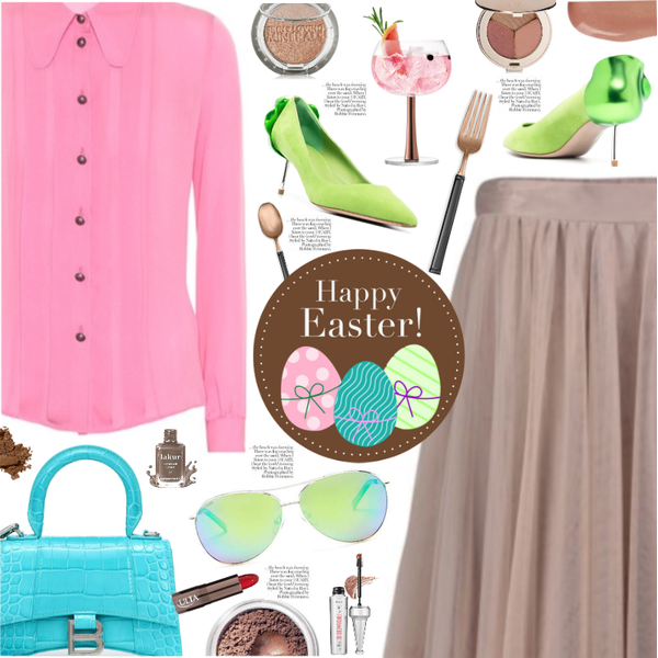 Easter Brunch- pink blouse, smoke tulle skirt, lime pumps