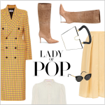 Lady of Pop: Yellow check Balenciaga coat, white blouse, pastel yellow skirt, suede boots