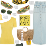 Lemon Print Canvas Slip-On Espadrilles, knit top, denim skirt