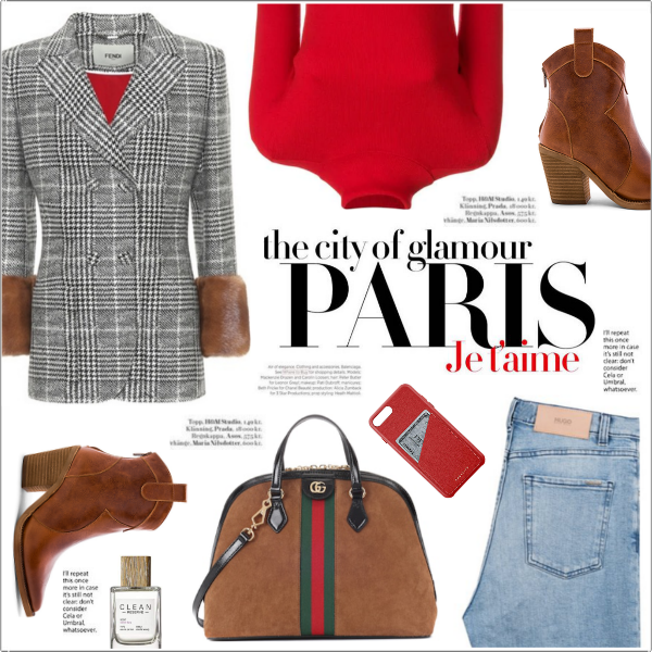 Paris Trip: Plaid gray blazer, jeans, ankle boots outfit