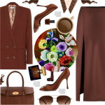 Chocolate brown-blazer, satin skirt, pumps,bag
