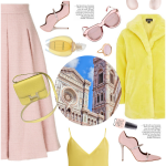 Soft Rose and Soft Yellow-Faux Fur Coat & Skirt