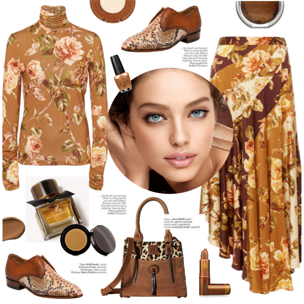 Shades of Brown-Resistance Fitted Floral-Print Cady Turtleneck Top and Skirt by Zimmermann